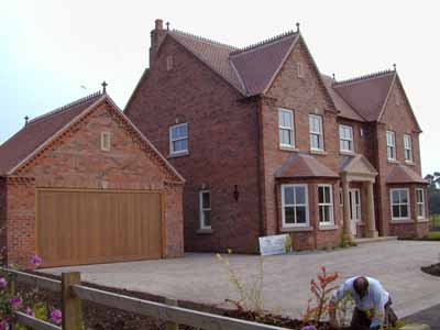 | Front elevation showing cedarwood garage door and Tegula paving |