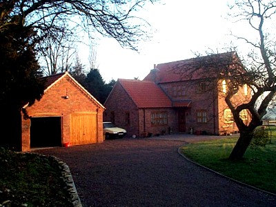 This house shows cottage windows and solid cedarwood garage doors and has a wonderful open roof to the lounge exposing all the timber rafetrs with king post trusses made by our joiners.